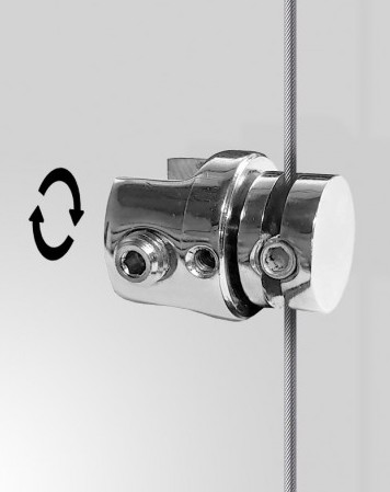 - The multi-angle design means your clamp can rotate 360° and can be secured onto any spot (vertical or horizontal) to hang poster pockets, large panels or multiple shelves from one cable system.